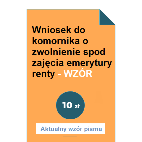 Jeśli nie wiesz jak napisać wniosek do komornika o zwolnienie spod zajęcia emerytury lub renty, to jesteś we właściwym miejscu! nasz prawnik przygotował dla Ciebie gotowy do pobrania wzór wniosku do komornika o zwolnienie spod zajęcia emerytury lub renty. Aby pismo było skuteczne, musi w treści zawierać niezbędne elementy i klauzule które stosuje się w tego typu pismach, ponadto masz pewność, że dokument jest aktualny na ten rok. Dla ułatwienia – wniosek do komornika o zwolnienie spod zajęcia emerytury lub renty otrzymasz w edytowalnym formacie PDF i DOC.